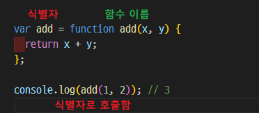 - 생성된 함수 객체를 가리키는 유효한 식별자가 필요