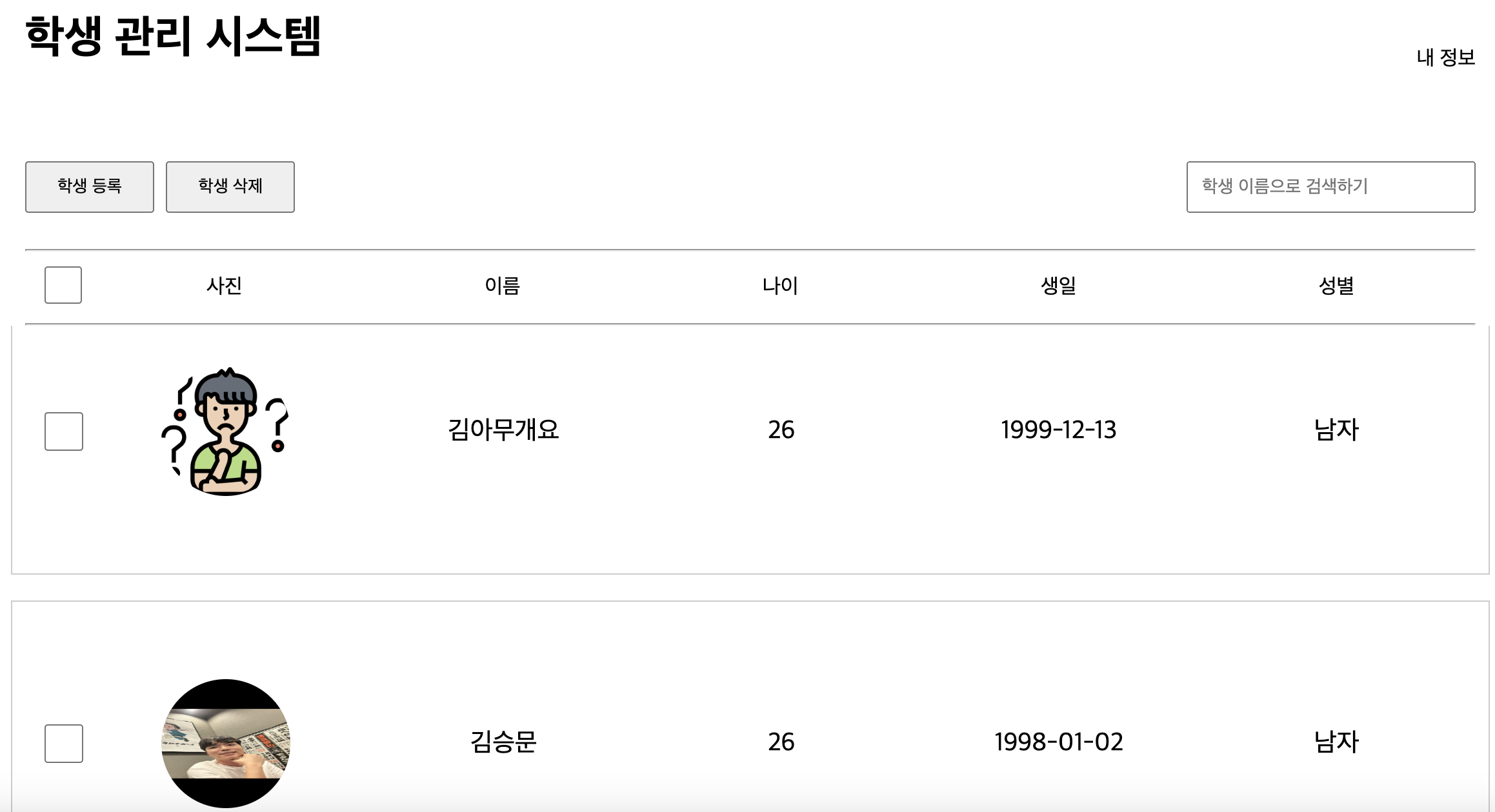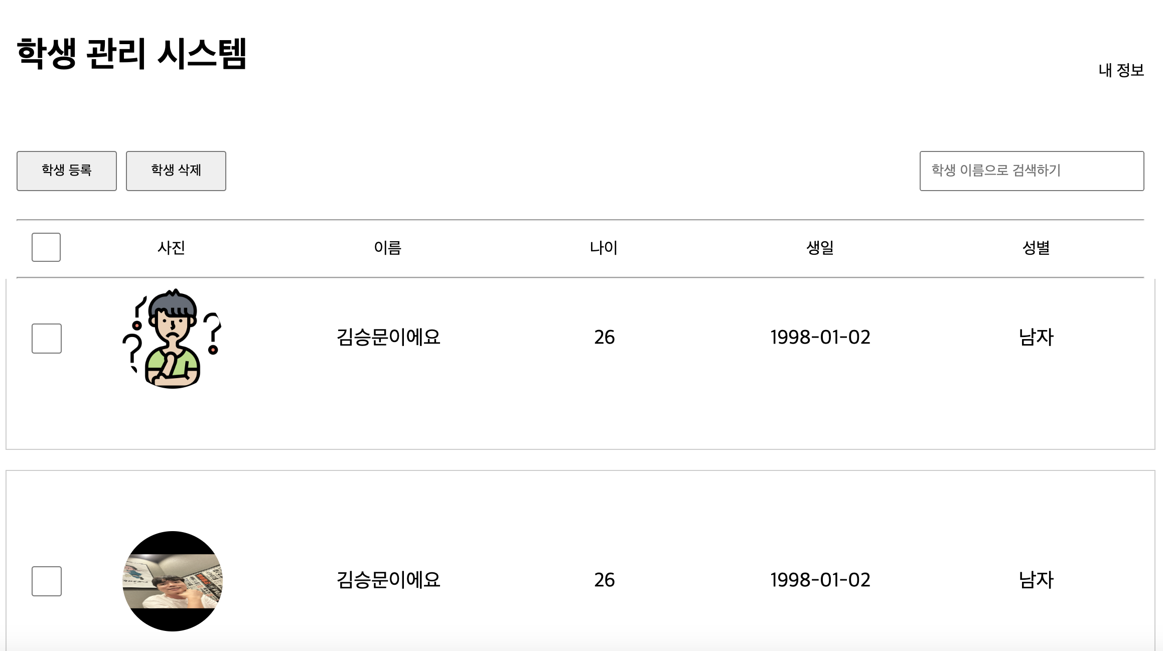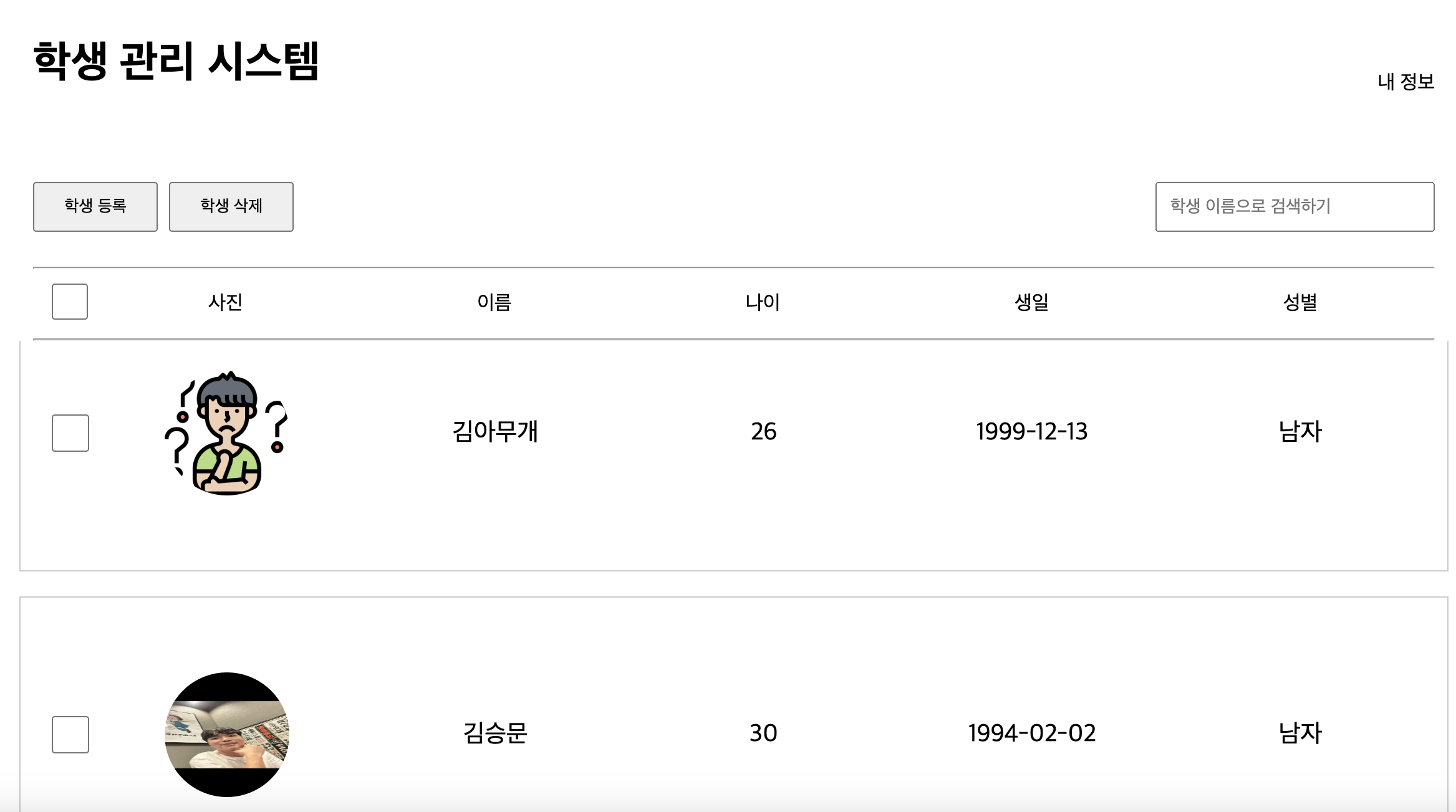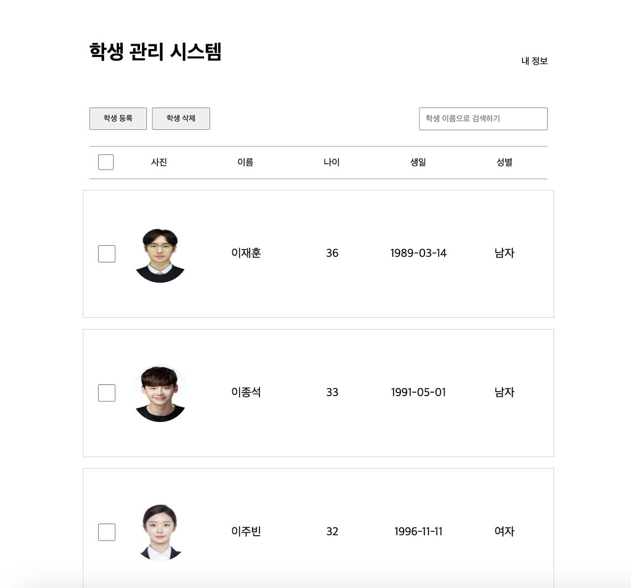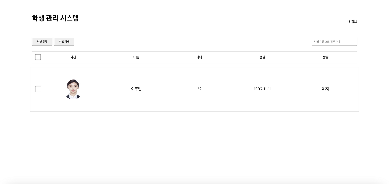 학생 정보 부분 리스트(스크롤) 페이지