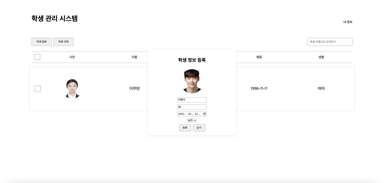 학생 정보 등록 화면