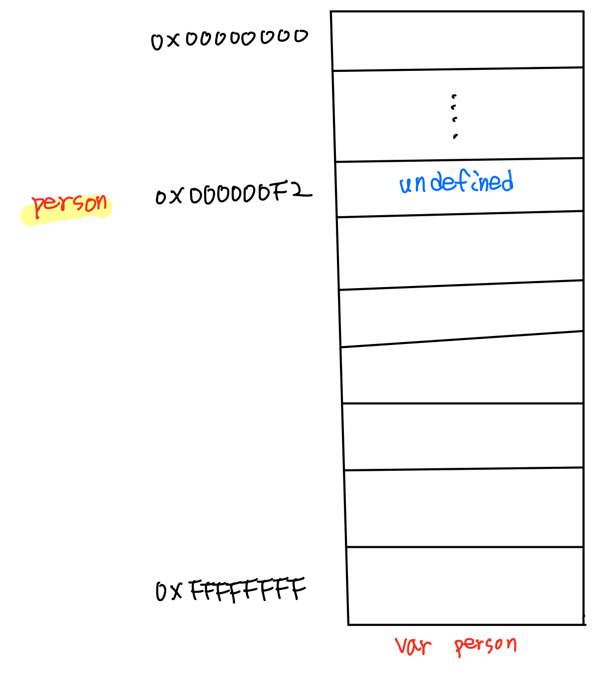 - 초기화 단계를 통해 person 변수에 암묵적으로 undefined를 할당 해 초기화한다.